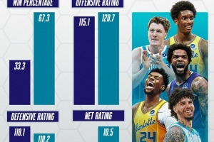 2026年的黄蜂焕然一新!胜率翻倍 攻防效率激增 净效率增加13.5